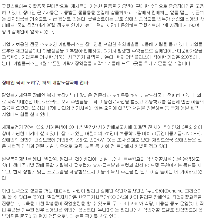 • 밀알복지재단은