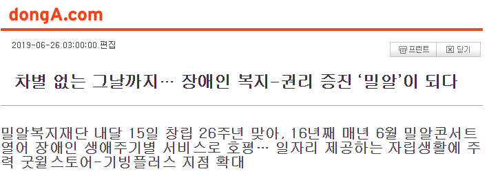 [동아일보] 차별 없는 그날까지… 장애인 복지-권리 증진 ‘밀알’이 되다