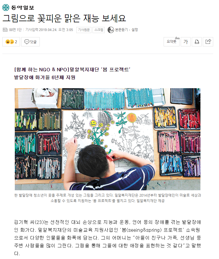 [동아일보] 그림으로 꽃피운 맑은 재능 보세요