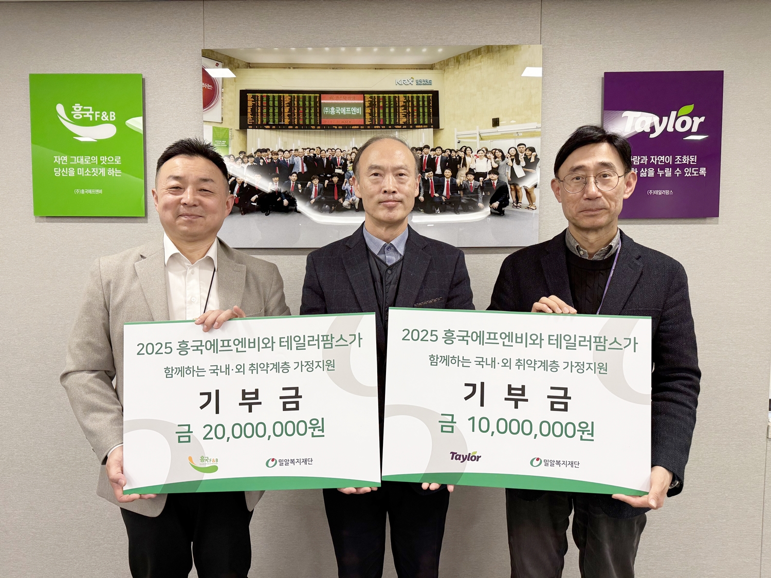 흥국에프엔비와 테일러팜스는 각 2천 만 원, 1천 만 원을 밀알복지재단에 후원하며 2025 1년간 5차례에 걸쳐 양사가 함께하는 임직원 봉사활동을 약속했다.