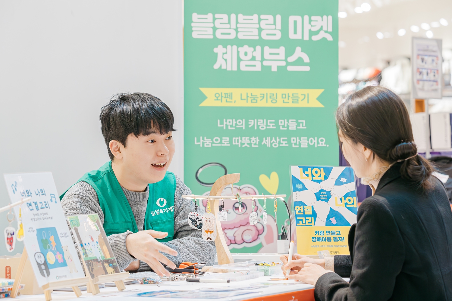 타임빌라스 수원에서 진행된 블링블링마켓 행사장에서 밀알복지재단이 시민참여형 나눔