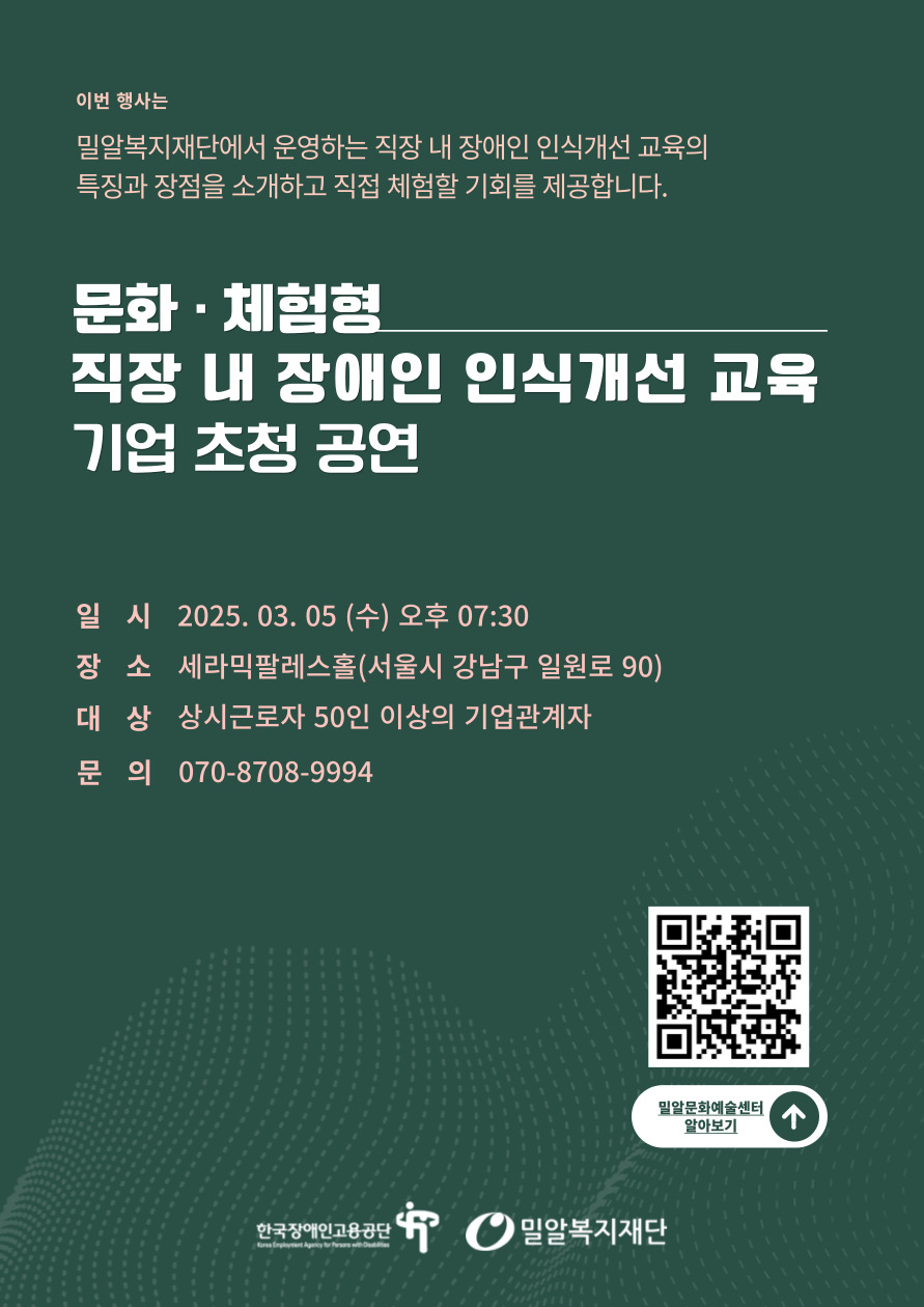 ![[포스터] 밀알복지재단 '문화·체험형 직장 내 장애인 인식개선 교육' 기업 초청 공연.jpg](/upload/editor/20250311170240845760069.jpg)