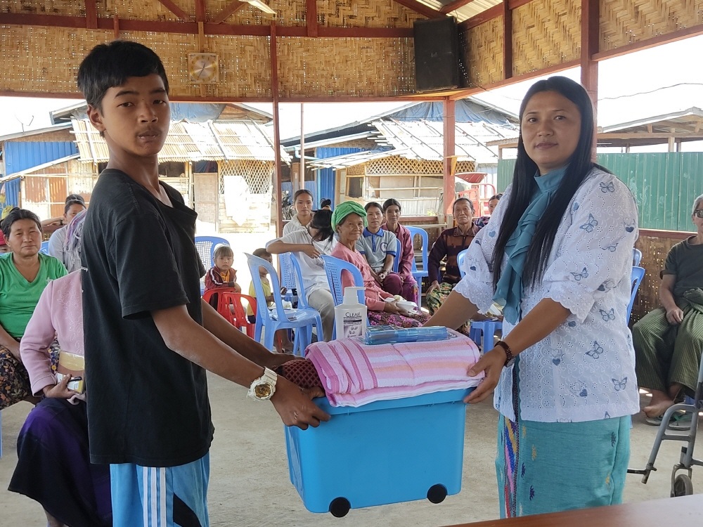 밀알복지재단이 카친주 난민들에게 전달한 생존키트 전달 현장