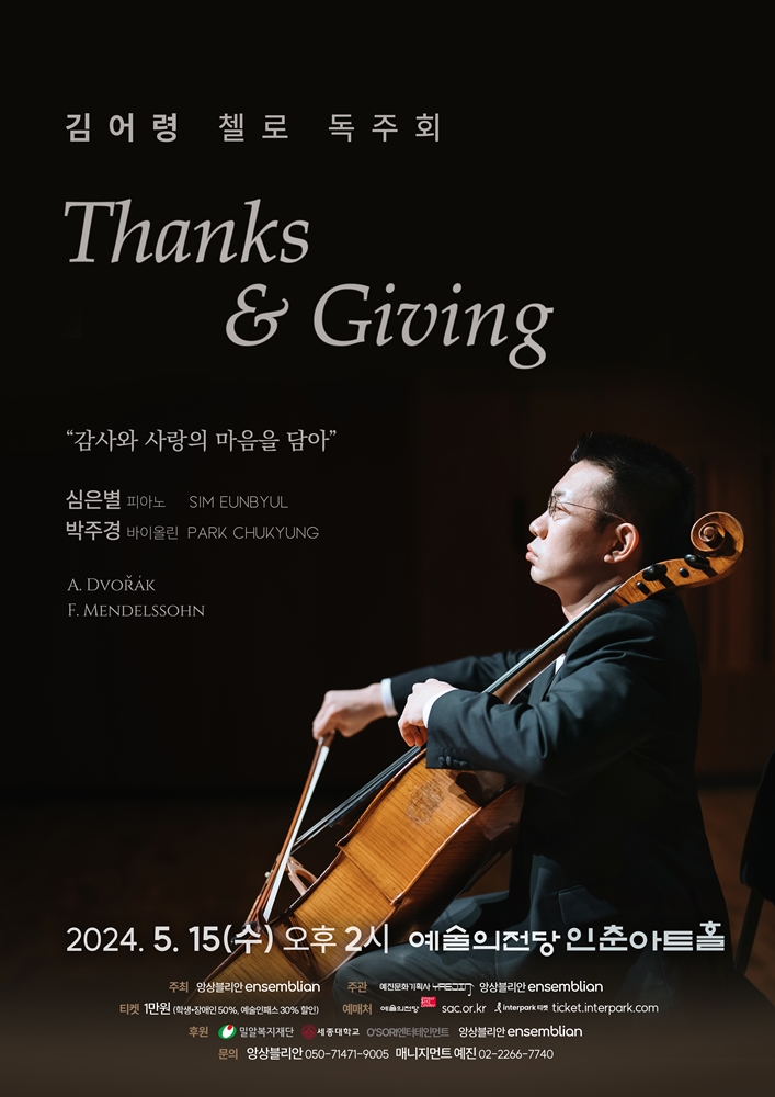밀알복지재단 발달장애인 예술단 ‘브릿지온 앙상블’ 리더이자 다양한 활동으로 주목받고 있는 첼리스트 김어령의 다섯 번째 독주회 ‘Thanks & Giving’이 스승의 날을 맞아 15일 오후 2시 예술의 전당 인춘아트홀에서 열린다.