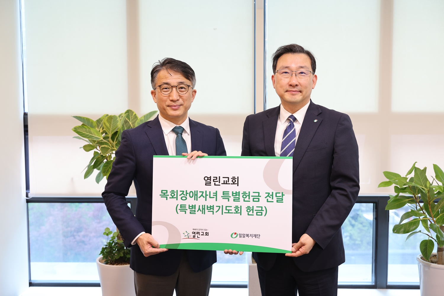 ■ 안양열린교회, 12일(금) 밀알복지재단에 부활절 이웃사랑 헌금 1500만 원 기부