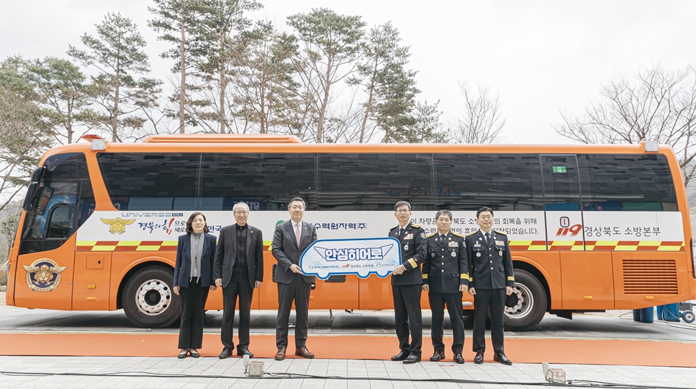 한국수력원자력과 밀알복지재단이 경북소방본부 119산불특수대응단에 ‘안심히어로 소방관 회복차’를 1대를 기부했다.