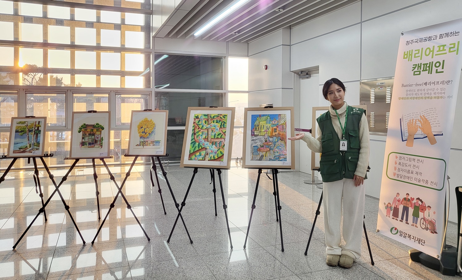 청주국제공항의 공간 기부로 진행되는 이번 캠페인은 발달장애인 작품 전시, 점자 그림책·네임택 만들기 등 다양한 체험 활동을 통해 장애에 대한 인식을 개선하고자 마련됐다.