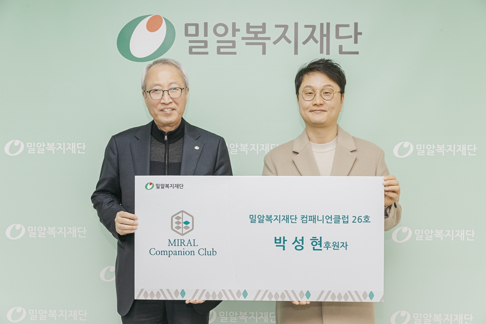 밀알복지재단(이사장 홍정길)은 박성현(44) 씨를 재단의 고액 후원자 모임인 컴패니언클럽 26호 후원자로 27일(수) 위촉했다.