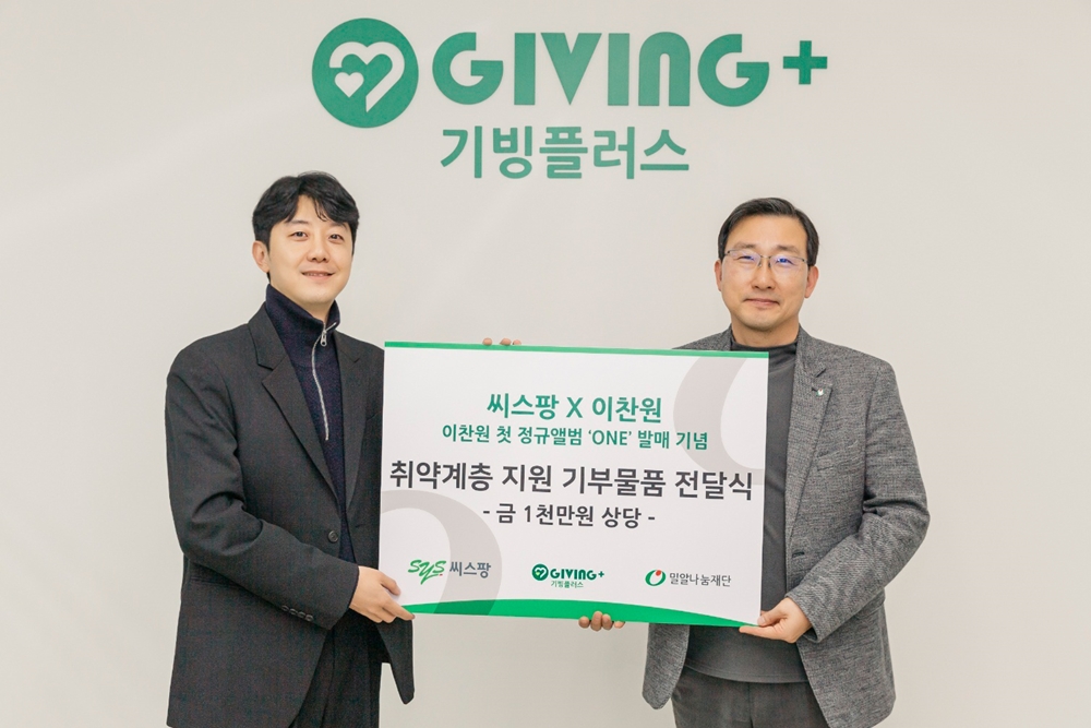 밀알나눔재단 기빙플러스는 씨스팡과 광고모델 이찬원이 약 450명 분량의 건강기능식품을 기부했다고 20일(월) 밝혔다. 이번 기부는 씨스팡의 2023년 새로운 광고모델 이찬원의 첫 정규앨범 ‘ONE’ 발매를 축하하기 위해 이뤄졌다.