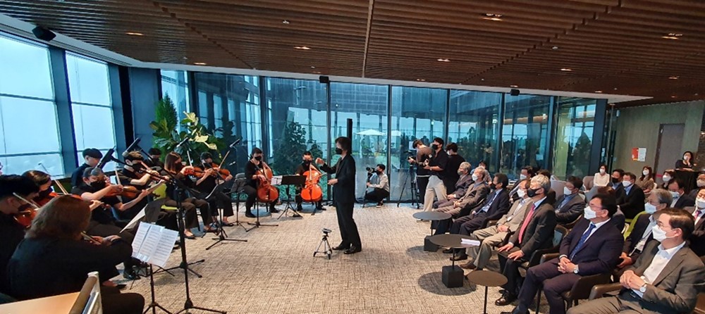이날 브릿지온 앙상블은 주페의 ‘비엔나의 아침과 낮과 밤 서곡’ 등 클래식부터 BTS의 ‘퍼미션 투 댄스’, 임영웅의 ‘사랑은 늘 도망가’ 등 우리 귀에 익숙한 대중가요까지 다채로운 연주를 펼쳤다.