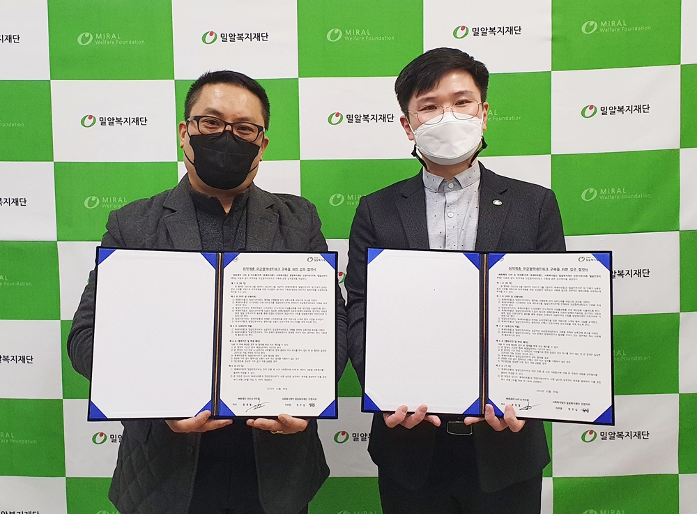 밀알복지재단 인천지부(지부장 정우섭)가 ㈜축제의나라&아우름(대표이사 윤병철, 이하 축제아우름)과 사회공헌 업무 협약을 체결했다고 11일(금) 밝혔다.