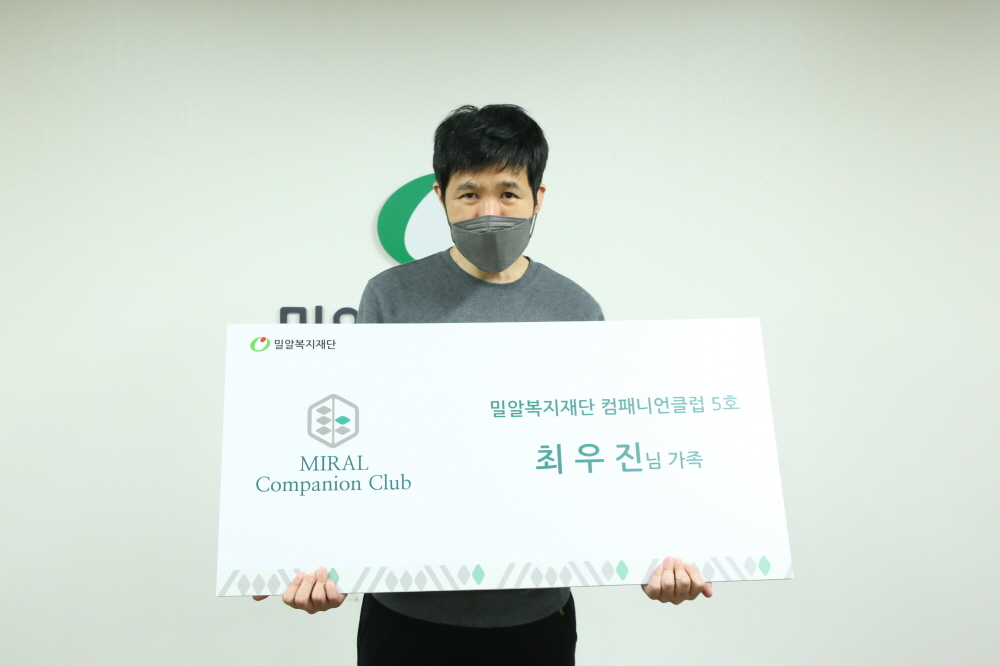 밀알복지재단(이사장 홍정길)은 지난 12일(수) 최우진(50)씨와 가족들을 고액후원자 모임 ‘컴패니언 클럽’ 5호 후원자로 위촉했다.
