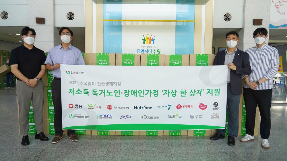 이번에 전달된 ‘자상 한 상자’에는 샘표식품과 본아이에프, 뉴트리원, 한국맥널티, 롯데제과, 글로벌비엠에스, 화인푸드, 대한SNS운영자협회, 케이디컴퍼니, 엘유케이, 오아시스브릿지, 비타바이오, 씨믹스, 동구밭, 헤드스파7, 래오이경제 등 16개 기업이 참여해 자사 물품을 기부했다.