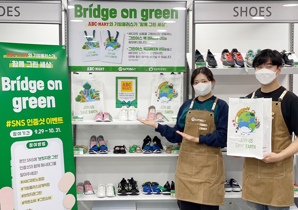 29일 문을 연 기빙플러스 상계역점이 다양한 오픈 이벤트를 실시한다. 사진은 ABC마트와 실시하는 브릿지 온 그린 캠페인.