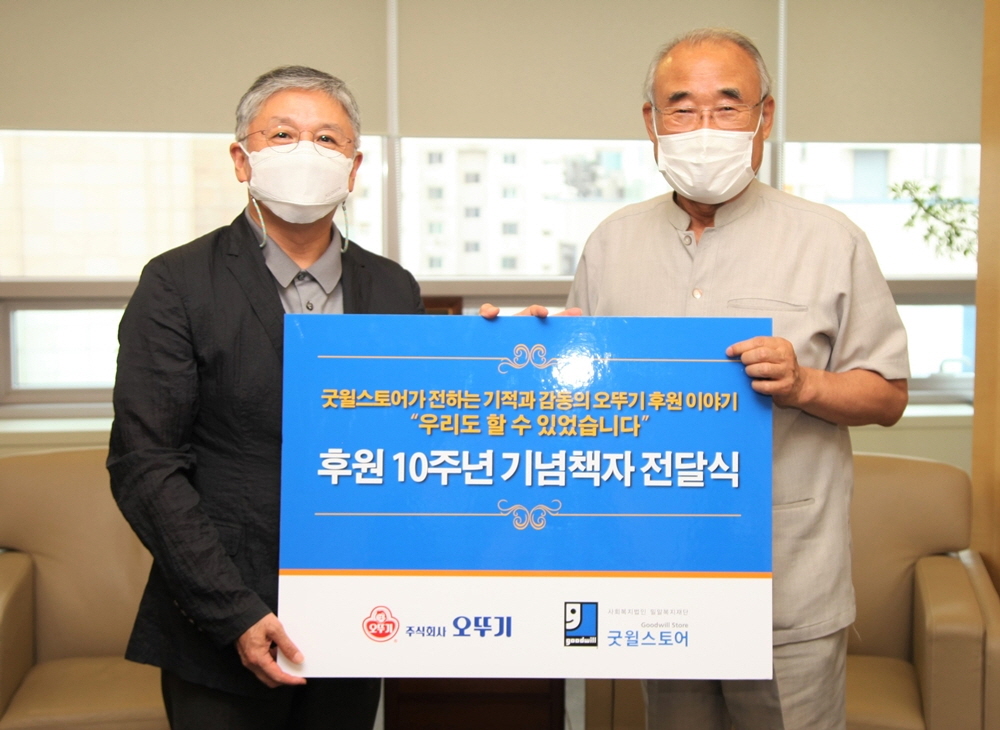 굿윌스토어, ㈜오뚜기에 후원 10주년 기념 감사책자 전달…
