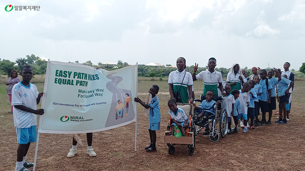 작년 라이베리아 사업장의 캠페인 슬로건은 ‘Easy path makes Equal path’ (모두가 접근할 수 있는 쉬운 길이 평등을 만든다)였습니다. 이는 장애인의 이동권과 접근성을 보장하는 것이 곧 사회 전체의 평등을 이루는 길이라는 것을 의미합니다.