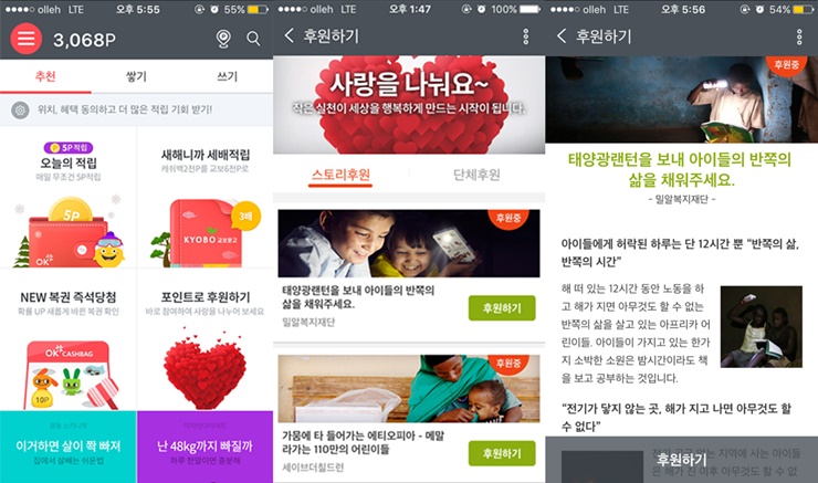 SK플래닛과 함께하는 OK캐쉬백 어플 기부 캠페인 진행