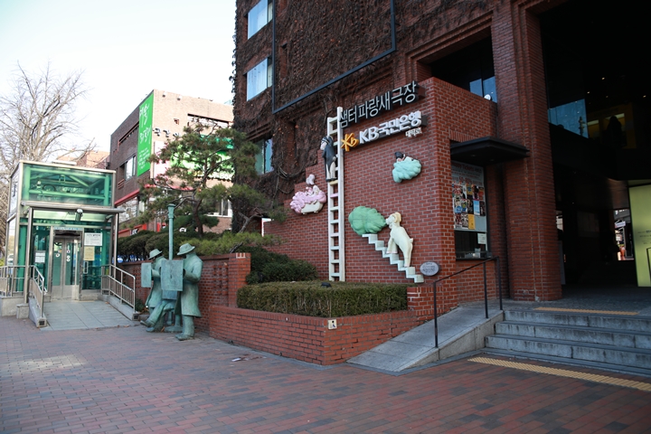 ▲혜화역 2번 출구 엘리베이터 앞에 위치해 접근이 편리한 샘터 파랑새 극장