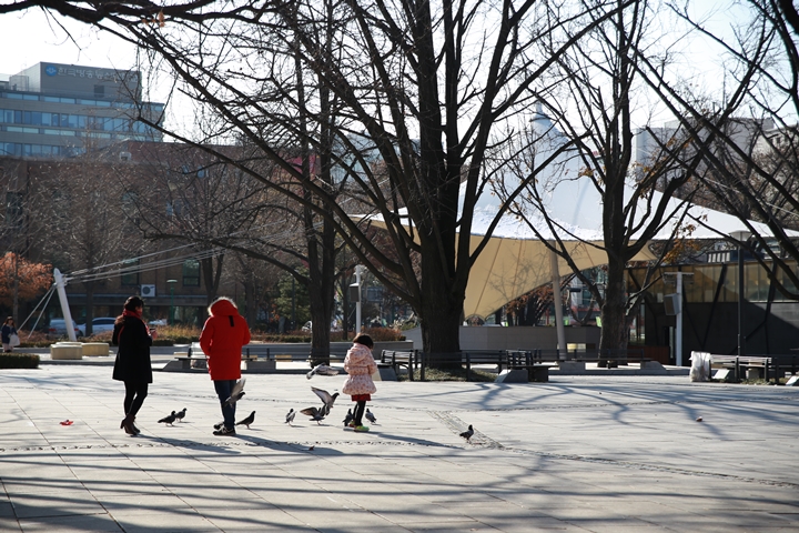 2번 출구 샘터 건물에 위치한 ‘샘터 파랑새 극장’은 대학로 최초의 민간 소극장으로 1984년에 개관했다. 이곳에서는 인형극, 동요콘서트를 비롯해 어린이 대상 프로그램과 연극, 라이브콘서트 등 활발한 공연을 펼치고 있는데, 지금까지 266만명이상의 관객이 찾아왔다고 한다. 빨간 벽돌 건물을 뒤덮은 담쟁이덩굴로 이목을 끄는 샘터 건물은 경사로와 엘리베이터, 장애인화장실까지 갖추고 있어 아름다움을 더했다. 그리고 이웃에 위치한 마로니에 공원은 마로니에 나무가 자라고 있어서 ‘마로니에 공원’이라 불리게 된 만큼, 유럽에서 가로수로 많이 사용되는 커다란 마로니에 나무들이 우거진 넓은 공원이었다. 전체적으로 바닥도 평평하고 깔끔했고, 야외 공연장마다 계단 옆에 경사로를 설치해놓아서 이용에 불편함이 없어 보였다.
