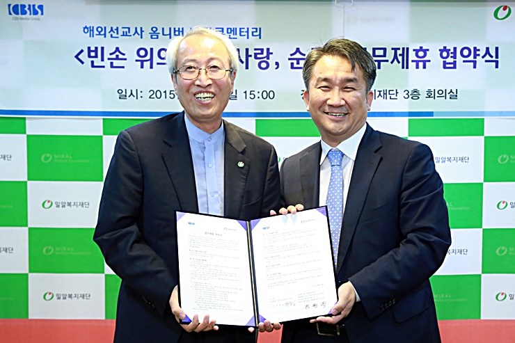 이 날 협약식에 참석한 CBS 한용길 사장은 “밀알복지재단과 공동으로 진행하는 <빈손 위의 놓인 사랑, 순종>을 통해 도움의 손길이 필요한 곳에서 나눔을 실천하기 위해 헌신하는 참된 그리스도인들의 이야기들이 널리 알려지기를 소망한다”고 밝혔습니다.