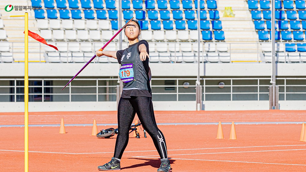 참가자격을 갖춘 해부터 매년 전국장애인체육대회에 참여하고 있는 김지혜 선수는 벌써 수많은 한국 신기록을 보유하고 있습니다. 2022년과 2023년 모두 금메달 3개를 수상하며 한국 신기록을 기록했고, 2024년 올해도 어김없이 원반던지기, 창던지기, 포환던지기 종목에서 3관왕을 달성했습니다. 참여하는 매 경기마다 좋은 성적을 내는 것은 묵묵히 훈련에 임하는 꾸준함과 목표를 향해 정진하는 향상심 덕분입니다. 올해 김지혜 선수는 이탈리아 오픈 챔피언십 ‘Jesolo 2024 Grand Prix’에 한국 국가대표로 참가해 세계적 선수들과 경기하기도 했습니다.