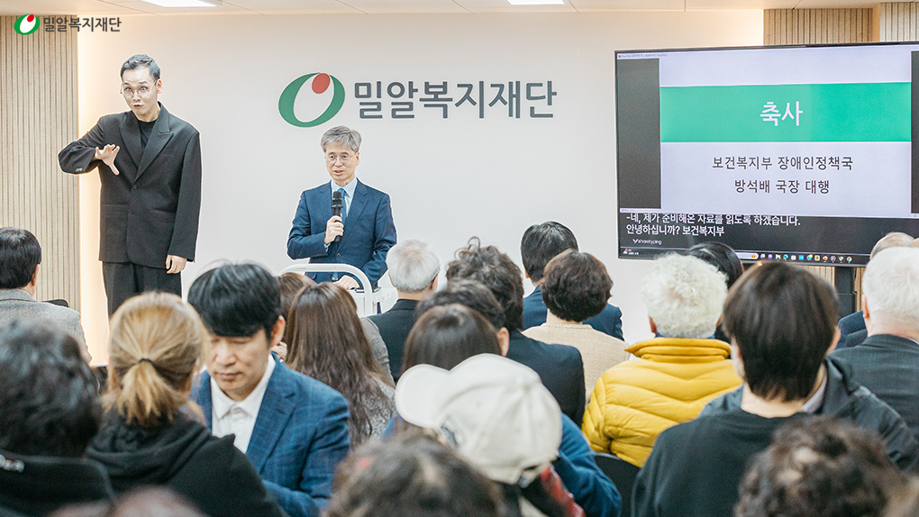 지난 11월 19일 열린 개소식에서는 밀알복지재단 정형석 상임대표와 보건복지부 장애인정책국 방석배 국장대리, 시청각장애인 당사자인 윤세웅 씨 등이 참석한 가운데 기관 경과보고와 기념사, 테이프 커팅식 등 다양한 행사가 진행되었습니다.