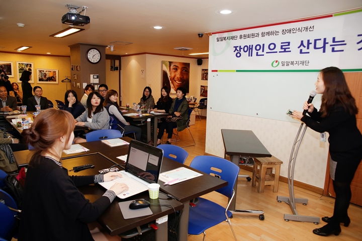 지난 4월 17일(금) 오후 7시, 밀알복지재단 후원회원들과 함께한 세미나, ‘장애인으로 산다는 것’ 이 진행되었습니다. 이번 세미나는 장애인의 날을 기념하여 열린 자리였기에 더 특별했습니다.