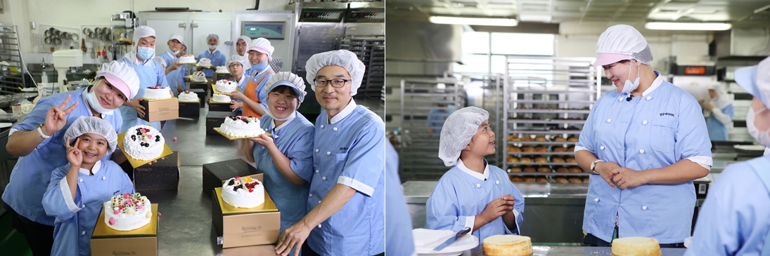 위촉식이 끝난 후, 파티쉐로 변신한 하재숙씨! 하재숙씨는 근로장애인 및 지역 아동들과 함께 ‘희망 케이크’를 만드는 시간을 가졌습니다. 특히 이 날 하재숙씨는 전문가 못지않은 솜씨로 케이크를 만들어 자리에 함께한 이들의 놀라움을 감추지 못했다는 후문입니다. 그럼에도 하재숙씨는 “연기가 제일 쉬웠어요!” 라는 장난기 어린 농담을 던지며 겸손한 모습을 보였습니다. 하재숙씨는 근로장애인 및 지역아동들과 함께 케이크를 만들며 서로 교감을 나누는 시간을 가졌습니다.