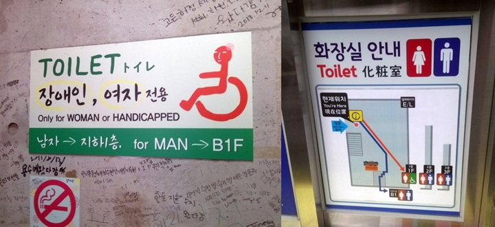또 하나의 문제는 화장실인데 대형 건물이 많지 않아 들어갈 만한 화장실이 거의 없다는 점이다. 그나마 쌈지길은 인사동에서는 대형건물 중 하나라 희망을 걸만도 하지만 장애인 전용화장실은 실망을 안겨주었다. 규정에 맞게는 설계되었겠지만 그곳에서 만난 장애인의 말에 따르면 회전이나 진입을 고려하지 않아 불편하고 여자화장실 한켠에 위치하고 있어 남자가 들어가기 곤란하다고 했다. 이왕 규정에 맞게 설치한다면 장애인의 입장에서 한 번 더 생각해보면 어떨까 하는 아쉬움이 남았다.