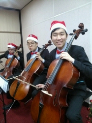 밀알첼로앙상블 단원들은 연말을 맞아 산타모자와 빨간 보타이를 매고 멋진 연주를 선보였습니다