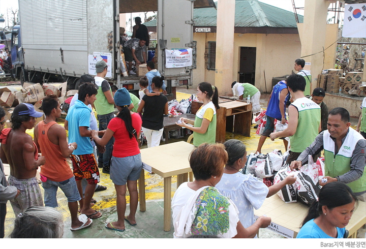 마닐라로부터 운송된 구호물품은 바라스(Baras), 산프로난도(Sanfronando), 칸다훅(Kandahug) 등 3개마을 3,000여명의 주민에게 전달되어 희망을 전하였습니다.