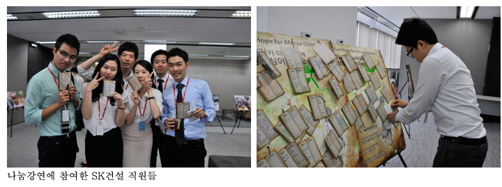 나눔강연과 더불어 SK건설 임직원들은 북드림(BOOK DREAM) 이벤트에 참여하여 아프리카 아동들에게 도서와 학용품을 기부하고 희망의 메세지가 담긴 책갈피를 선물하였다.