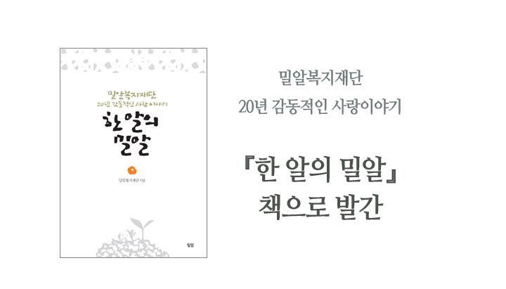 이번 발간된 『한 알의 밀알』은 밀알복지재단 설립 20주년 맞이하여 밀알복지재단 설립부터 지금까지의 역사를 재미있게 서술해냈다. 한 순간도 순탄한 적이 없었고 이 모든 시간 위에 하나님의 인도하심이 있었다고 말한다.