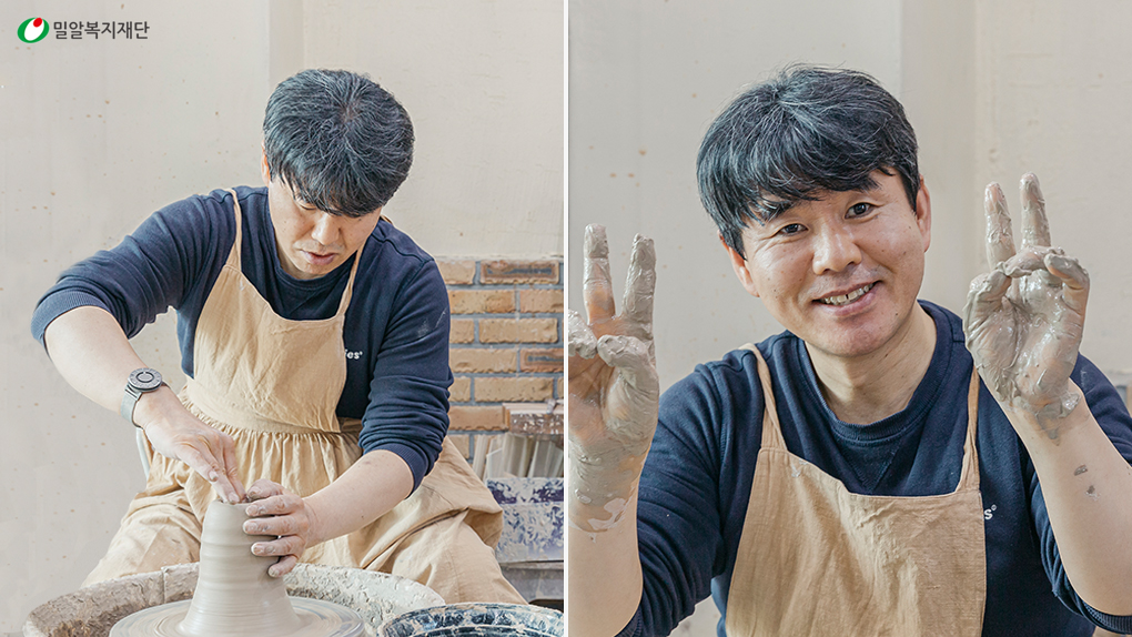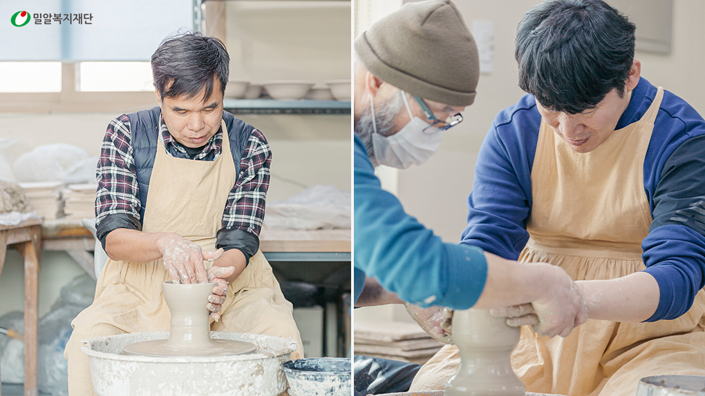 체험이 시작되자, 시청각장애인들은 물레 위에 도자기 흙을 넣고 열심히 손으로 빚었습니다. 그리고 도자기를 만드는 동안 시청각장애인들의 얼굴에는 웃음이 끊이질 않았습니다. 시각장애와 청각장애를 중복으로 갖고 있는 시청각장애인에겐 촉각이 매우 중요한데요. 잘 보이지 않고 들리지 않아도, 손끝으로 도자기 흙을 조심스럽게 만지며 자신만의 개성 있는 도자기 그릇을 완성했습니다.