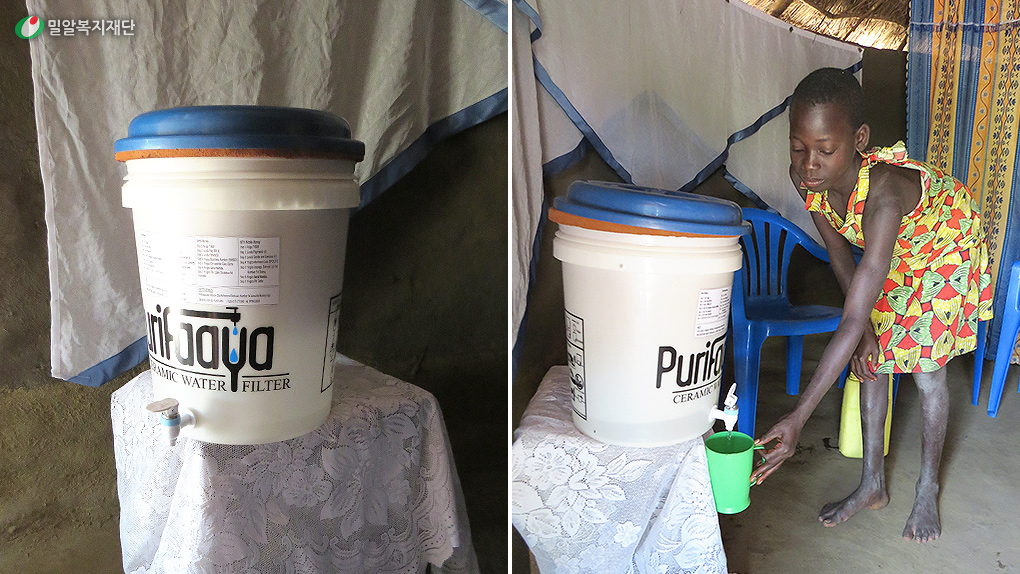 밀알복지재단 우간다 사업장은 식수와 각종 위생 문제로 위험에 노출된 아무루 지역 주민들을 위해 2021년 총 2회에 걸쳐 아동, 장애인, 노인, 임산부 등 취약한 가족구성원이 있는 빈곤층 80가정을 대상으로 오염된 물을 깨끗하게 정수 할 수 있는 ‘가정용 정수 필터’를 지원했습니다. 각 가정에 전달된 ‘가정용 정수 필터’는 오염된 물속의 박테리아를 99.9% 정수 가능하여 식수위생환경 개선 및 감염병 예방에 힘을 쏟았습니다.