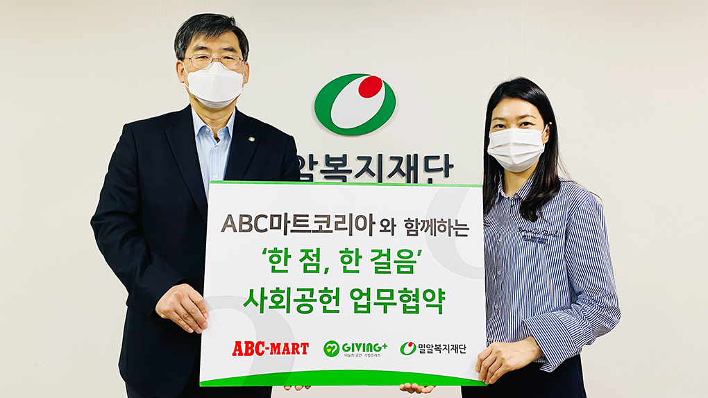 코로나19가 강타했던 지난 2020년, 밀알복지재단과 ABC마트는 사회공헌 업무협약을 체결했습니다. 두 기관은 협약을 통해 도움이 필요한 취약계층의 더 나은 내일을 지원하고 상생의 선순환을 위한 지속적인 협업관계를 구축할 것을 약속했습니다!
