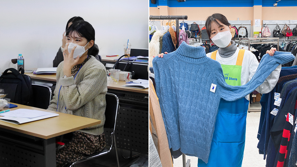 / 굿윌스토어 일일 봉사활동 중인 이경은 대학생 기자(우)