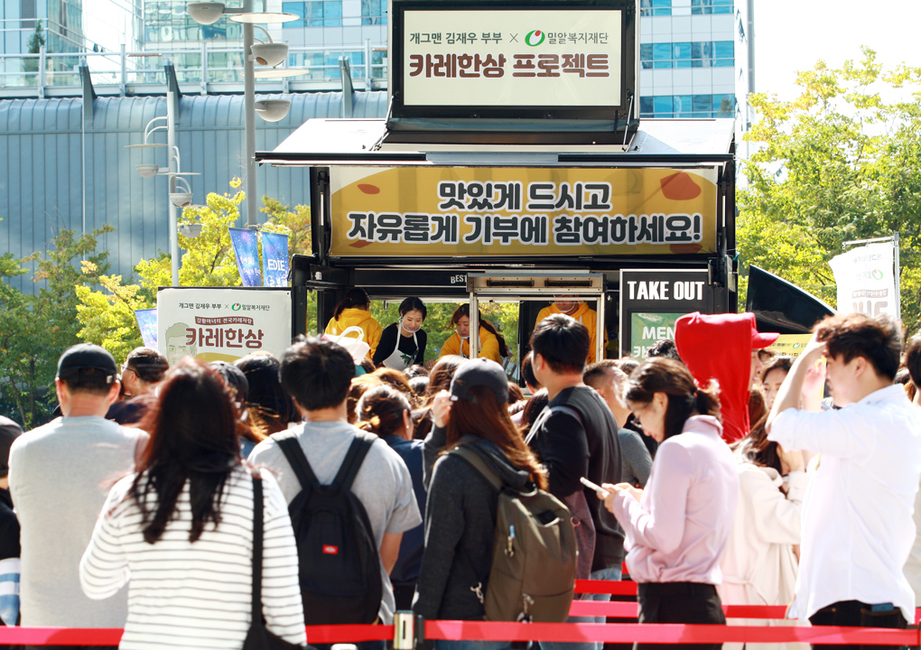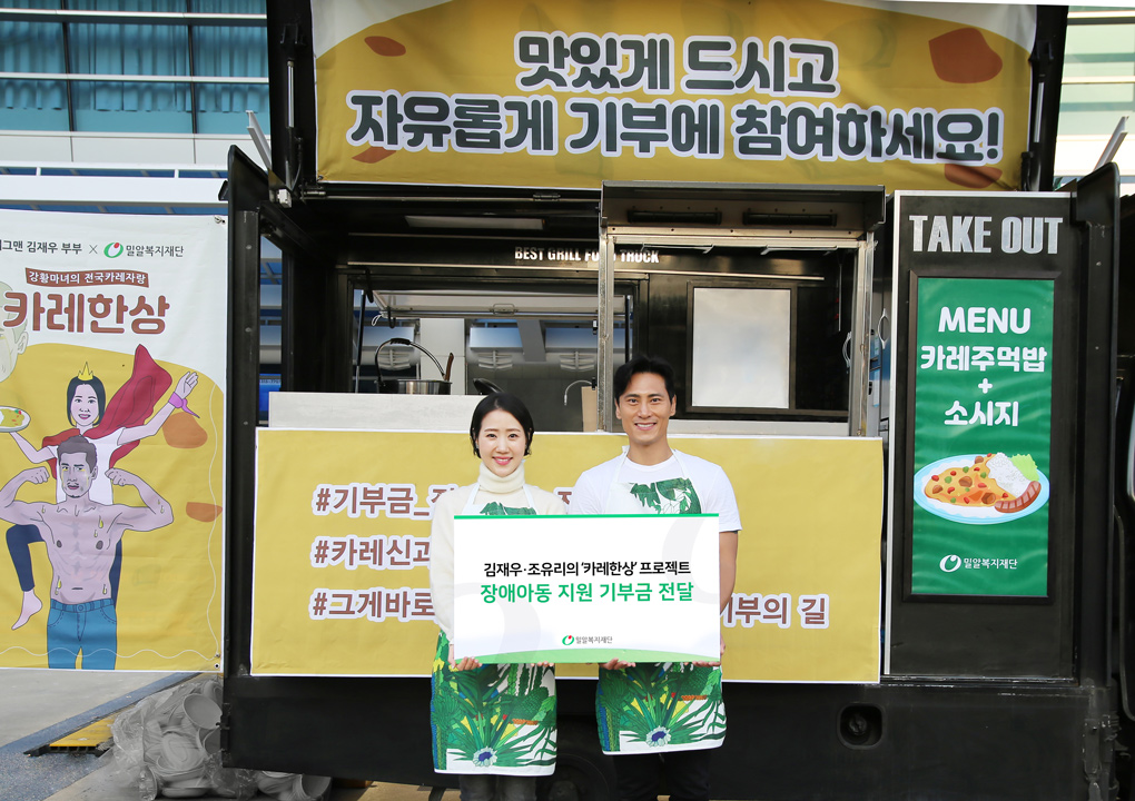 밀알복지재단은 개그맨 김재우, 조유리씨와 함께 <카레한상 프로젝트>라는 퍼네이션을 진행했습니다. 이번 행사는 '카레'로 SNS내에서 큰 사랑을 받은 김재우 부부가 카레로 받은 사랑을 많은 사람들과 나누고 싶다는 마음에서 시작되었습니다. 10월 12일 서울 상암 DDMC 광장을 시작으로 10월 26일 광주 유스퀘어 광장, 11월 9일 부산 벡스코 광장에서 총 3번의 카레한상 프로젝트가 진행되었습니다.