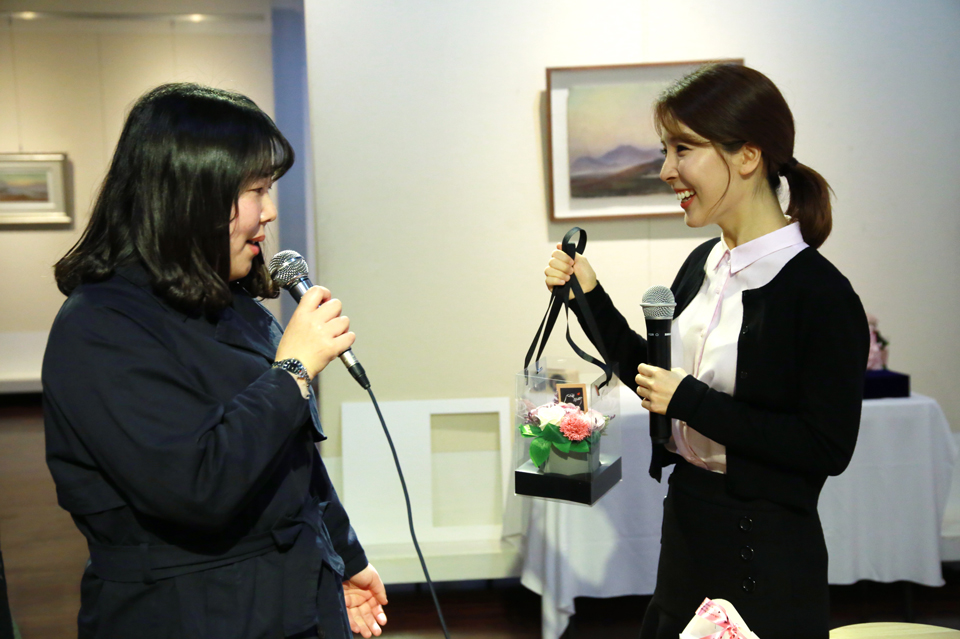 이후에는 홍보대사 위촉을 환영하는 마음을 담아 직원들이 직접 준비한 삼행시 이벤트와 밀알복지재단에서 운영하는 직업재활센터의 장애인 근로자분이 손수 만든 꽃다발을 전달하는 시간도 가졌습니다.