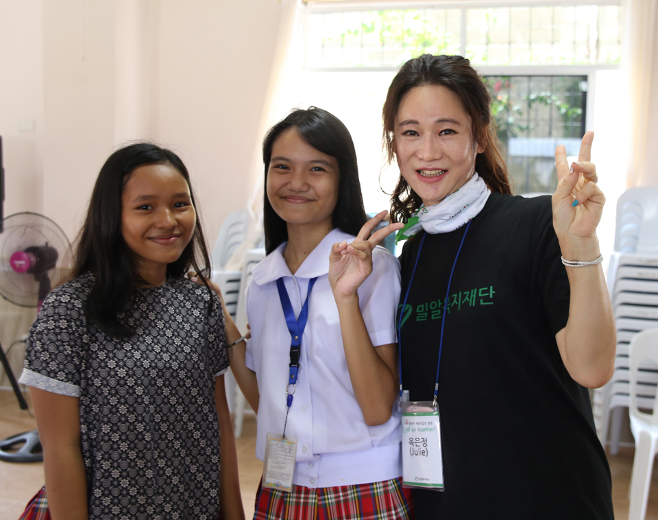 또, 작년에는 밀알복지재단의 필리핀 세부 사업장에 방문했습니다. 그건 정말 잊을 수 없는 기억이 되었어요. 아침, 저녁으로 옷을 갈아입을 정도로 땀을 흘리면서 열심히 봉사했었거든요. 그 가운데 아이들과 함께한 모든 순간순간이 소중한 추억으로 남아있습니다.