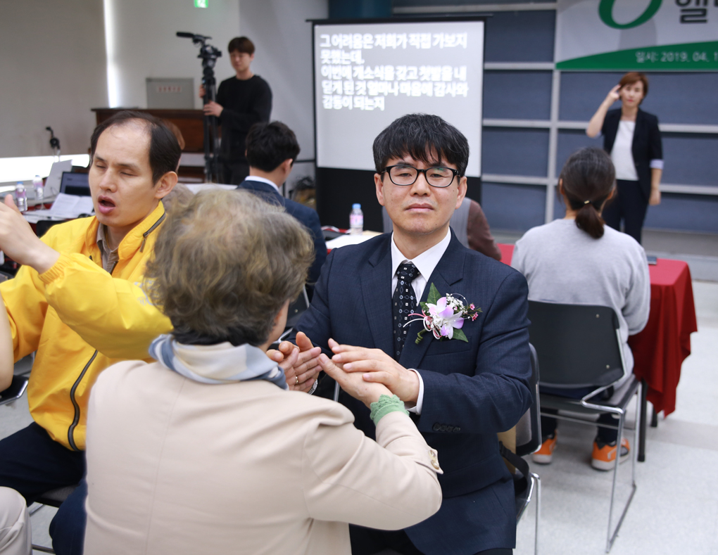 (수화로 '사랑해'를 말하고 있는 시청각장애인 당사자 및 내빈들)