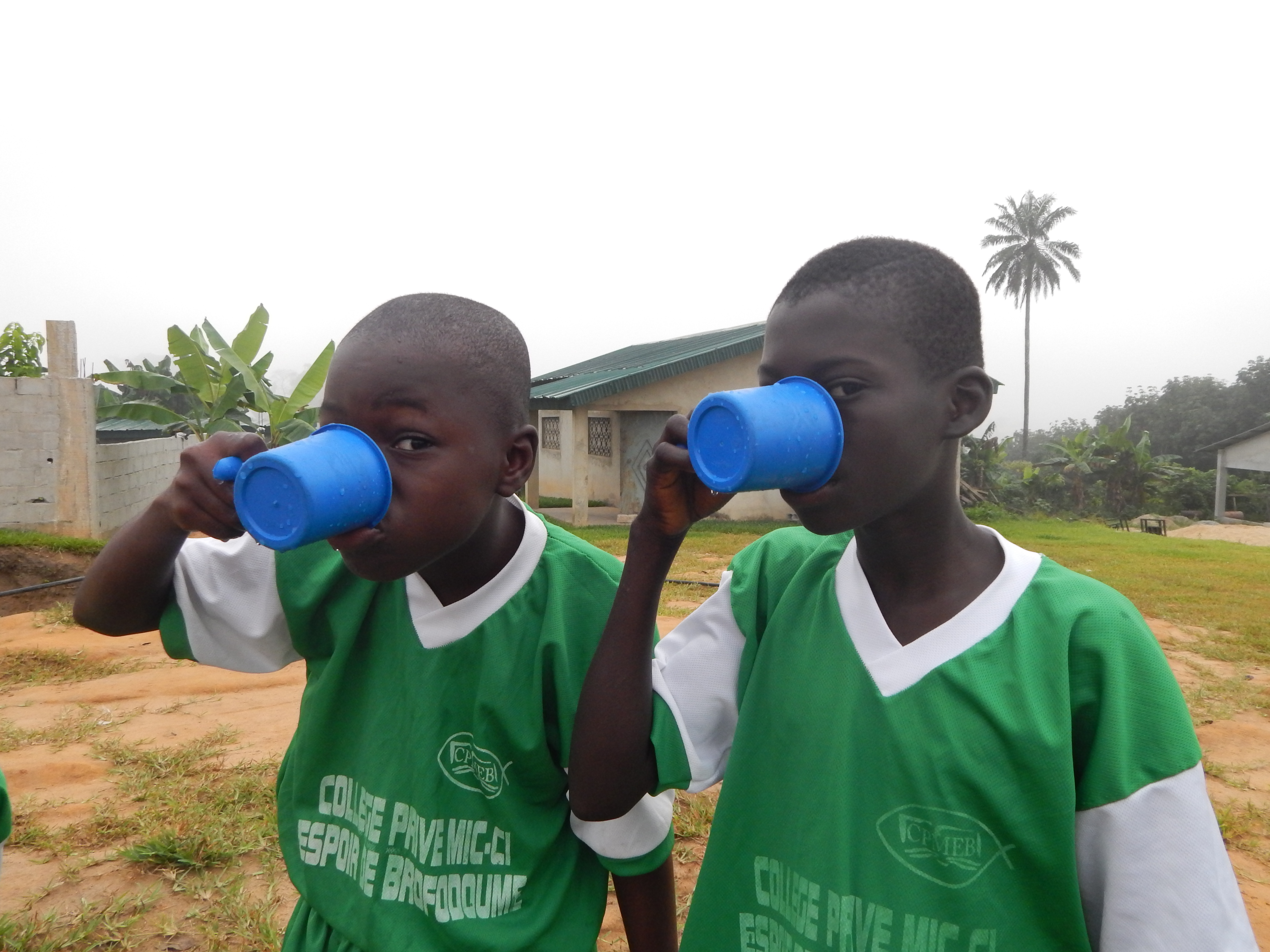 공사가 끝나는 날, 희망중학교의 학생들과 교사들은 우물 앞에 모여 깨끗한 물이 솟아나길 숨죽여 기다렸습니다. 수도 파이프에 연결한 호스에서 물이 한 두 방울씩 떨어지더니 이내 학생들의 환호소리와 함께 콸콸 쏟아져 나왔습니다. 기쁨에 젖은 아이들은 “De l'eau(물)!"을 외치며 저마다 물을 마시기 위해 모여들었습니다.