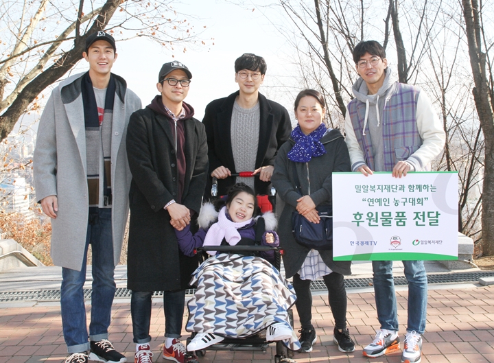 밀알복지재단과 연예인 농구단 소속 배우들이 지난 2일 오후 성남시 수정구에 위치한 희망대공원에서 후원품 전달식을 가졌습니다.