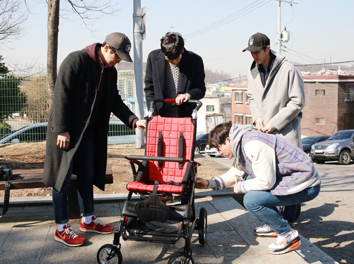 미영이에게 줄 특수유모차 살펴보는 배우들