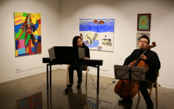 이번 정기 전시회에는 현재 ‘봄(seeing&spring) 프로젝트’에 소속된 발달장애인 작가 16인이 참여한 31점의 작품을 선보였습니다. 전시회를 시작하는 24일 오후 3시에는 전시 오프닝 행사를 열었습니다. 김지우 작가의 전시회 소감 발표에 이어 발달장애인 첼리스트 김어령씨와 김지민 작가의 어머니가 전시회를 축하하는 의미의 공연을 해주셨습니다. 이어서 갤러리에 전시된 작품들에 대해 봄 작가들의 짧은 작품 소개가 이어졌습니다. 작가들은 자신의 작품 앞에 서서 갤러리를 방문한 사람들에게 작품을 소개하며, 질문을 받기도 하는 등 관객과 소통하는 시간을 가졌습니다.