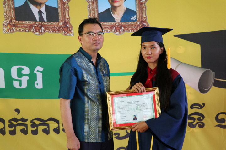 캄보디아는 한국의 수능처럼, 국가에서 치르는 고등학교 졸업시험이 있습니다. 이 졸업시험을 치르는 학생의 40%이상이 기준 점수를 통과하지 못해 F등급을 받는다고 합니다. F등급을 받게 되면, 정부에서 인정하는 졸업장이 아닌 수료증이 발급됩니다. F등급을 받으면 정규대학에 응시할 수 없고 1년 후에 다시 재시험을 봐야 합니다. 시험에서 A등급을 받는 것은 기적에 가깝습니다. 올해 약 9만 5천명이 고등학교 졸업시험에 응시하였는데, 9만 5천명의 학생 중에서 450명만이 A등급을 받았습니다. 그런데, 희망학교 2회 졸업생인 ‘리읍까니까’라는 학생이 전체 석차 56등으로 A등급 받은 것입니다. 전국에서 A등급을 받은 학생이 한명도 없는 지역이 3곳이나 있을 정도이니, 놀라운 일입니다.