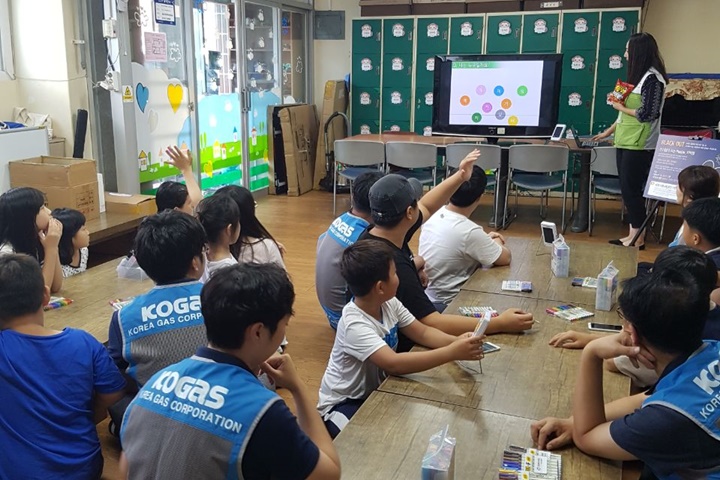 한국가스공사 대전충청지역본부와 대전·충청지부는 8월 22일 에너지의 날을 기념해 대전 관내 지역아동센터 5개소(다음세대지역아동센터, 새싹지역아동센터, 세계중앙지역아동센터, 소망지역아동센터, 푸른솔지역아동센터) 이용 아동 100명을 대상으로 생활 속에서 에너지를 절약하고 나누는 방법에 대해 배울 수 있는 「친환경에너지 체험 교실」 프로그램을 진행했습니다.