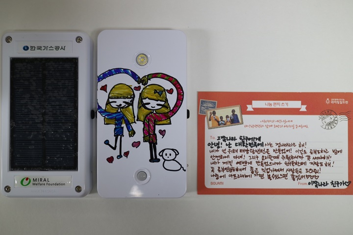 전기없이 살아가는 아프리카 에너지 빈곤국 주민들을 위해 힘써주신 한국가스공사 임직원분들과 태양광랜턴 조립 체험을 통해 에너지와 환경의 소중함을 깨닫고, 먼 나라의 친구들을 위한 따듯한 마음을 나눠준 지역아동센터의 아이들에게 감사의 인사를 전합니다.