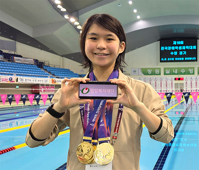 장애청소년 운동선수를 10년 넘게 지원해온 밀알복지재단 점프(JUMP) 사업에서는, 올해 처음 함께하게 된 황신 선수(2008년생)가 수영 부문에서 무려 6관왕이라는 놀라운 성과를 거뒀습니다.