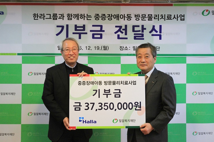 밀알복지재단은 한라그룹 임직원들이 이번 걷기 행사로 모은 기부금 총 3,735만원을 거동이 어려운 중증장애 아동 15명의 재활을 위해 1년간 매주 한 차례씩 방문 물리치료를 받을 수 있도록 지원할 예정입니다.